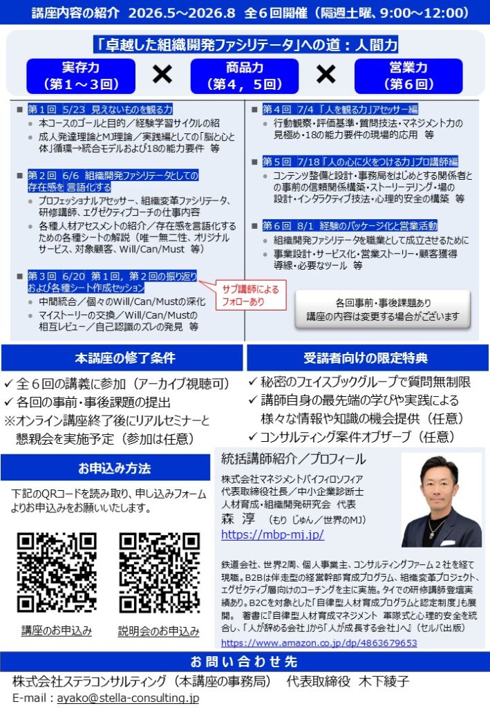 卓越した組織開発ファシリテータを養成する実践講座です。